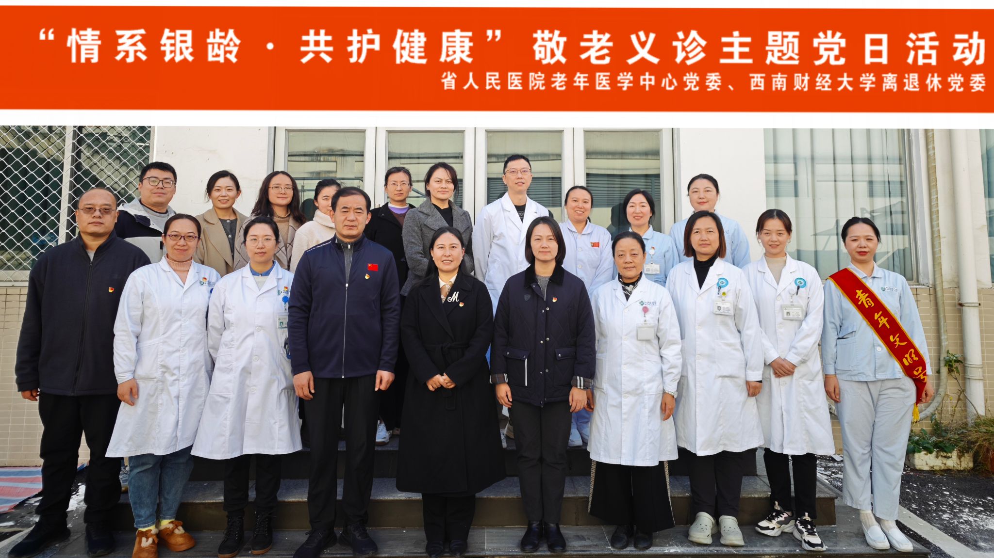 活动启动会上,黎玲在致辞中强调,高校离退休教职工是一个知识层次高、健康需求多元的特殊群体,老年医学中心有意愿、也有能力将优质的医疗资源与服务精准对接到西南财经大学,共同为老同志们的健康晚年生活提供坚实的医疗保障,相信未来双方可以建立更加常态化、制度化的协同机制。杜超吾代表离退休党委对省医院专家们的到来表示欢迎和感谢。她讲到,敬老义诊主题党日活动已连续开展六年,老年医学中心各位专家切实为我校老同志健康带来了优质专业的医疗服务,希望双方能进一步加深交流合作,为老同志们在健康管理、疾病预防、用药指导和康复护理等方面提供持续的专业支持。